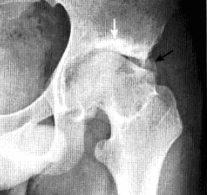 1、平片:急性期髋关节囊肿胀、关节间隙增宽,撕脱性骨折,随着继发性退行性骨关节病的发生,出现关节软骨下硬化、囊变、关节间隙狭窄、骨赘增生,关节腔可见游离体,髋关节常合并陈旧性骨折痕迹。
