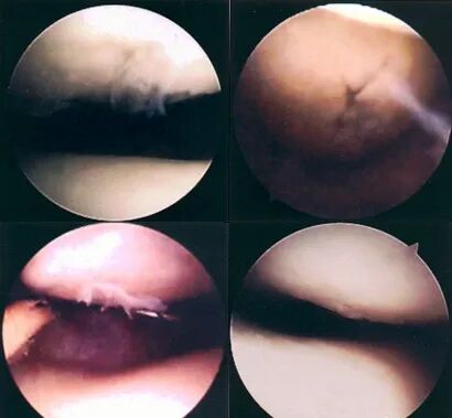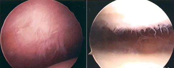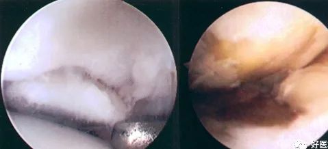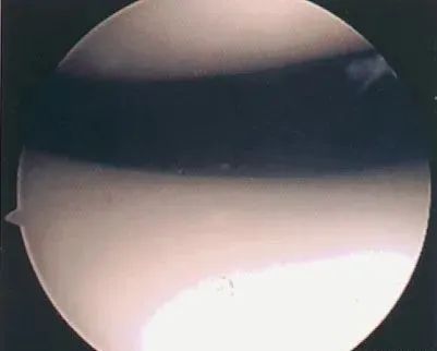 Ⅲ级:软骨的毛刷状或纤毛化改变达关节软骨厚度一半以上,直径>1.3cm,关节软骨表面类似蟹肉样改变,表面有多发软骨碎片附着其下的软骨。
