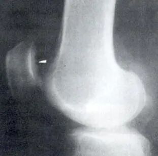 早期无异常;晚期可因软骨大部磨损,髌骨与股骨髁部间隙变窄、毛糙,关节对合不良,髌骨和股骨髁部边缘可有骨质增生。