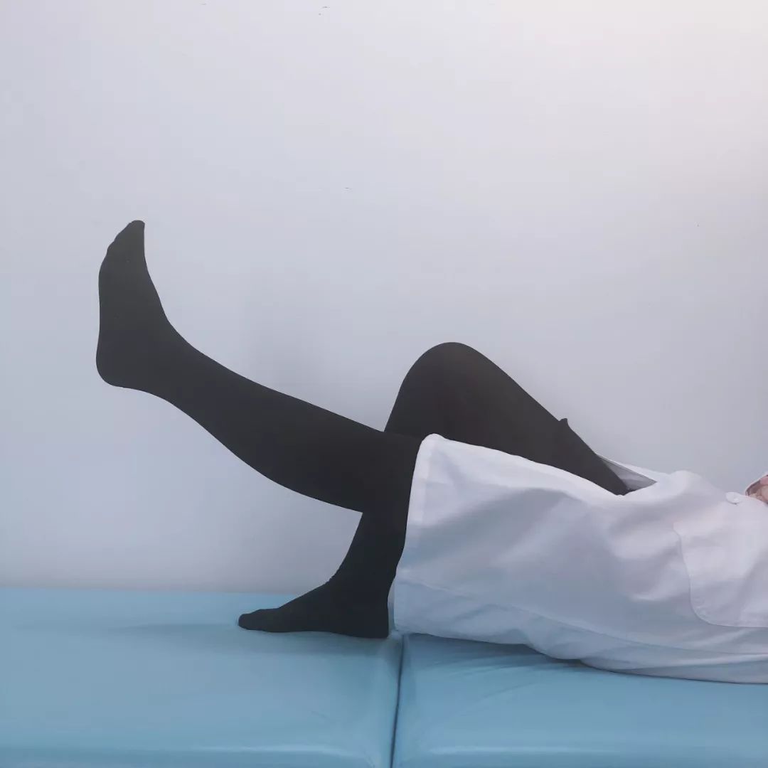 动作要点:取仰卧位,患肢伸直,脚尖向上,患肢缓慢上抬,与地面呈30°,注意不要过高和过低。