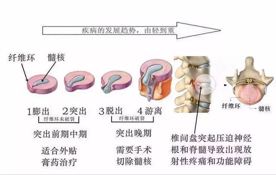 腰椎间盘突出,是较为常见的疾患之一,这主要是因为腰椎间盘各部分(尤其是髓核)在有不同程度的退行性改变后,加之外力因素的作用下,椎间盘的纤维环破裂,髓核组织从破裂之处突出或脱出,导致相邻脊神经根遭受刺激或压迫,从而产生腰部疼痛,腿麻无力等一系列临床症状。